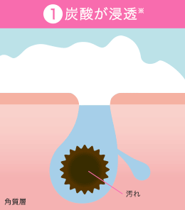 毛穴よりも小さい高濃度炭酸のマイクロ泡が毛穴の中まで入り込んで